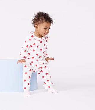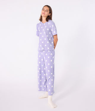 Women's Cotton Pyjamas With a Heart Print, Short Sleeves and Wide Legs
