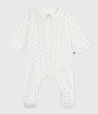 Babies' Long-Sleeved Cotton Blouse With Breton Stripes and Hearts On The Collar
