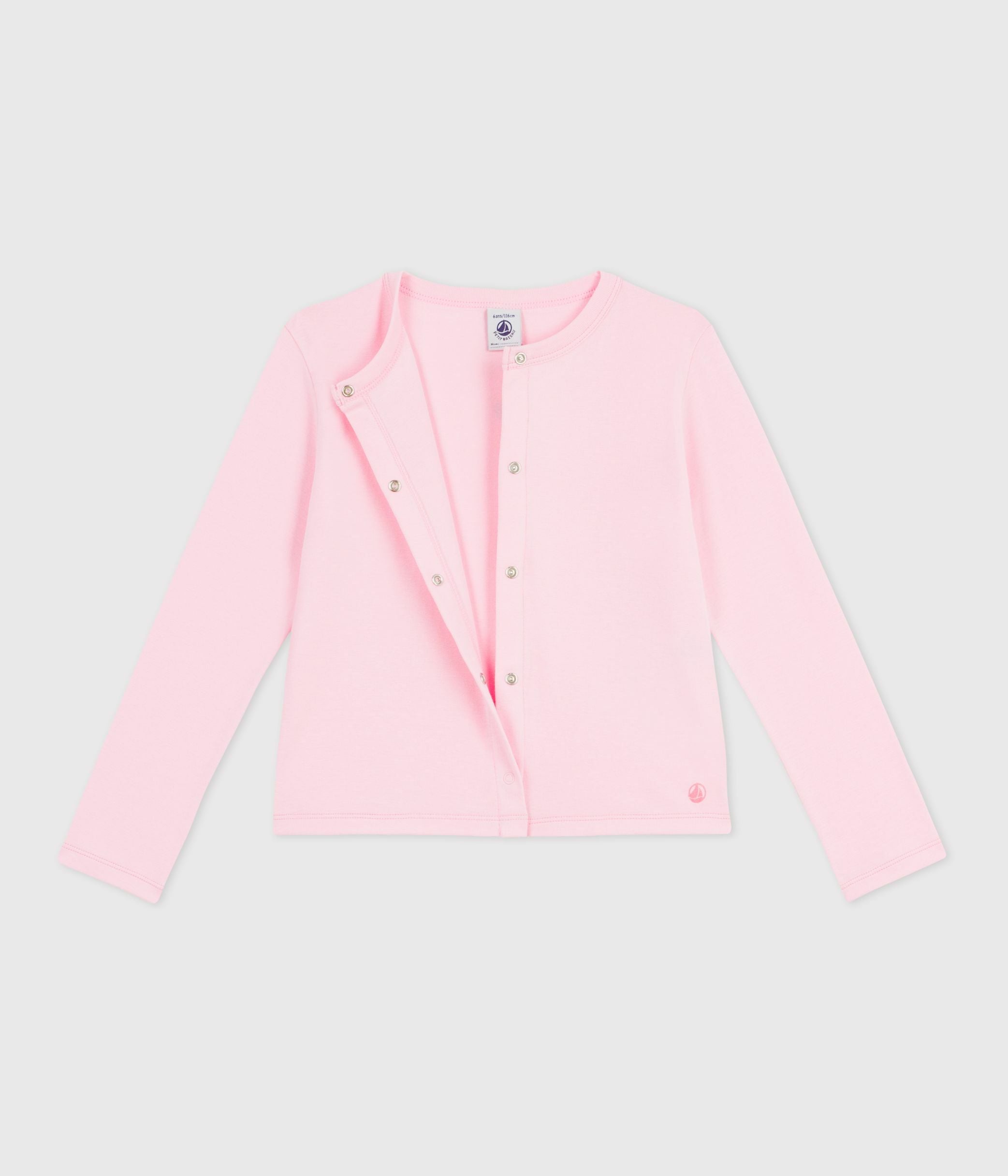 • Girl's cardigan in 1x1 rib, a soft, stretchy fabric.
