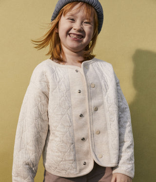 Girls' Sleeveless Cardigan in Printed Cotton Poplin and Sherpa