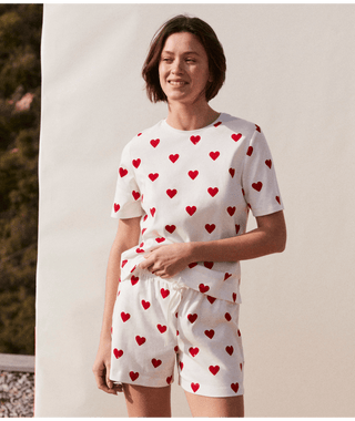 Women's Cotton Pyjamas With a Heart Print, Short Sleeves and Wide Legs